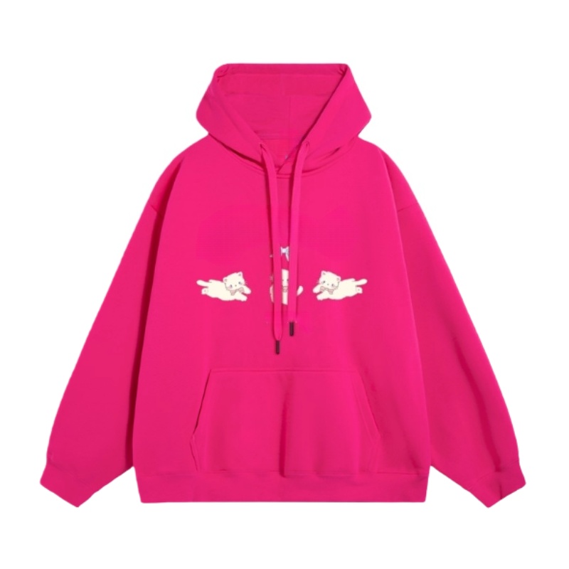 Three Cats Fleece-Lined Rose Pink Hoodie